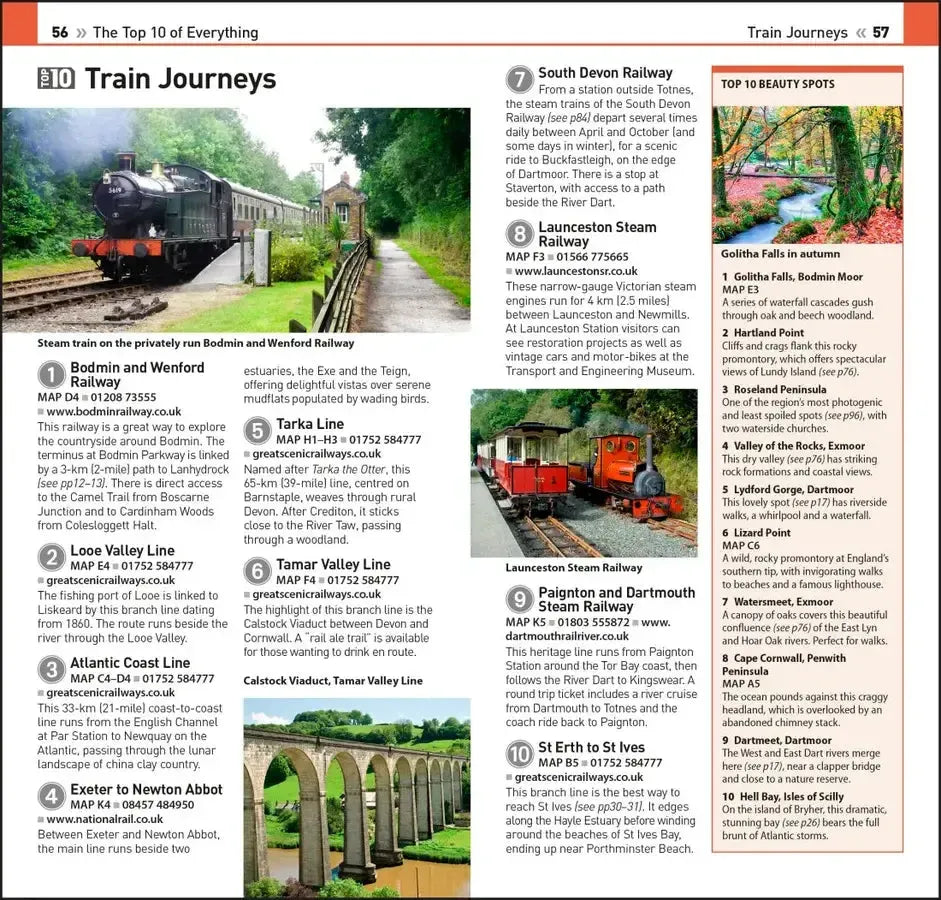 • Top 10 lists of Cornwall and Devon's must-sees and must-dos, including visiting beautiful Dartmoor, exploring the vibrant Eden Project and taking a boat trip around the Isles of Scilly