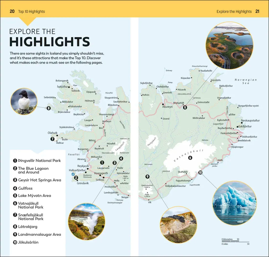• A laminated pull-out map of Iceland, plus seven full-colour area maps