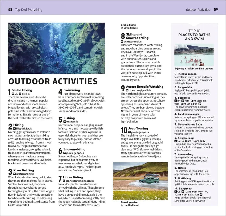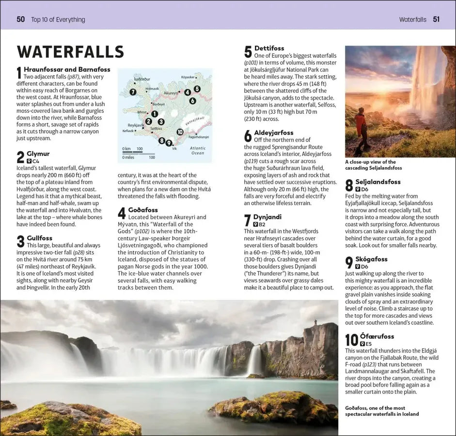 • Themed lists, including the best waterfalls, volcanoes, hiking trails, museums in Reykjavík and much more