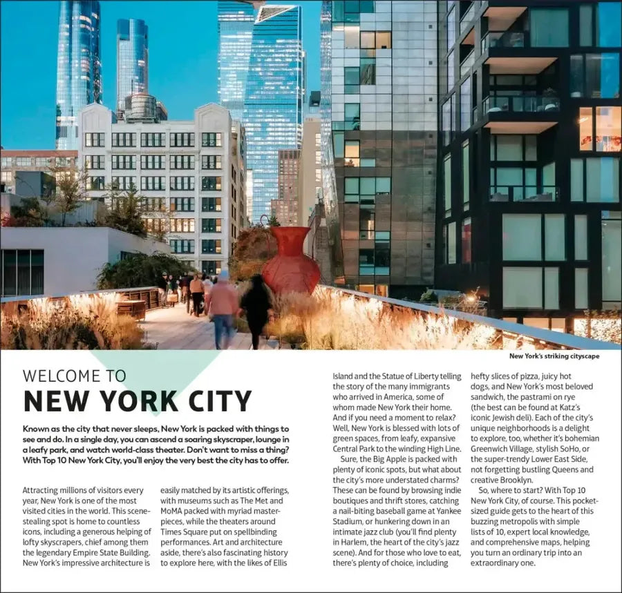 Make the most of your trip to New York City with this Top 10 guide. Planning is a breeze with our simple lists of ten, covering the very best that to New York City has to offer and ensuring that you don’t miss a thing. Best of all, the pocket-friendly format is light and easily portable; the perfect companion while out and about.