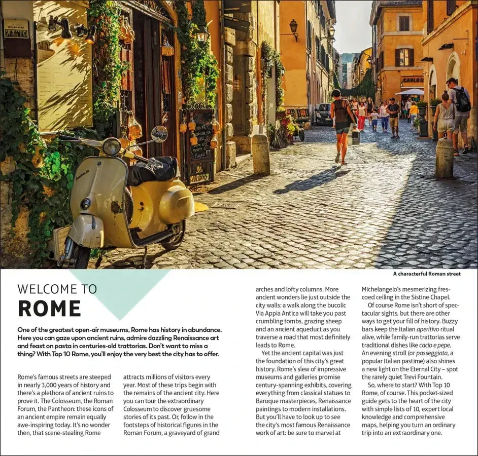 Make the most of your trip to Rome with this Top 10 guide. Planning is a breeze with our simple lists of ten, covering the very best that Rome has to offer and ensuring that you don’t miss a thing. Best of all, the pocket-friendly format is light and easily portable; the perfect companion while out and about.