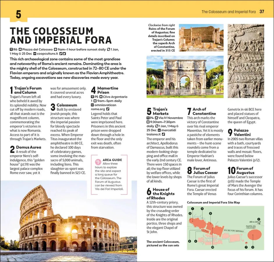 • Top 10 lists of Rome's must-sees and must-dos, including visiting the Colosseum, exploring the Roman Forum and taking a trip to Vatican City