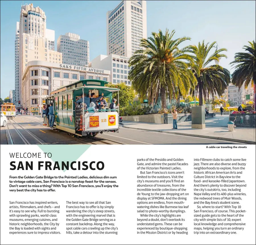 Make the most of your trip to San Francisco with this Top 10 guide. Planning is a breeze with our simple lists of ten, covering the very best that San Francisco has to offer and ensuring that you don’t miss a thing. Best of all, the pocket-friendly format is light and easily portable; the perfect companion while out and about.