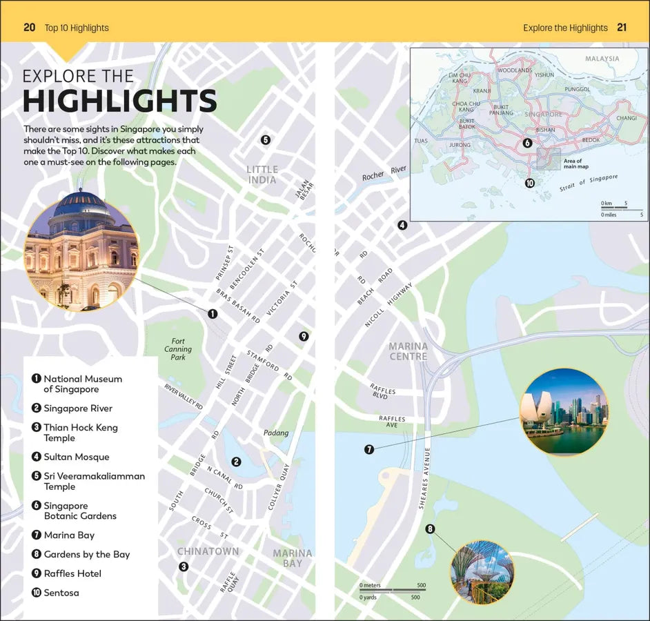 • Top 10 lists of Singapore’s must-sees, including National Museum of Singapore, Thian Hock Keng Temple, Marina Bay and Sentosa
