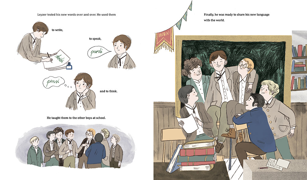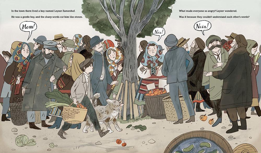 Once there was a town of many languages but few kind words. Growing up Jewish in Bialystok, Poland, in the late 1800s, young Leyzer Zamenhof was surrounded by languages: Russian, Yiddish, German, Polish, and many others. But the multiethnic Bialystok was full of mistrust and suspicion, and Leyzer couldn’t help but wonder: If everyone could understand each other, wouldn’t they be able to live in peace? So Zamenhof set out to create a new language, one that would be easy to learn and could connect people around the world. He published a book of his new language and signed it Dr. Esperanto — “one who hopes.” Mara Rockliff uses her unique knack for forgotten history to tell the story of a young man who saw possibility where others saw only barriers, while Polish illustrator Zosia Dzierzawska infuses every scene with warmth and energy, bringing the story of Esperanto to life.