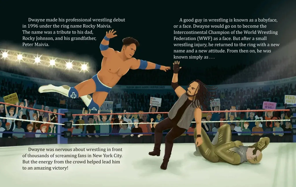This Little Golden Book about Dwayne "The Rock" Johnson—wrestling star, movie star, TV star, and all-around nice guy—is an inspiring read-aloud. Young children will learn that even superstars have setbacks: when Dwayne's dream of playing in the NFL didn't come true, he had to find a different path to happiness and success.