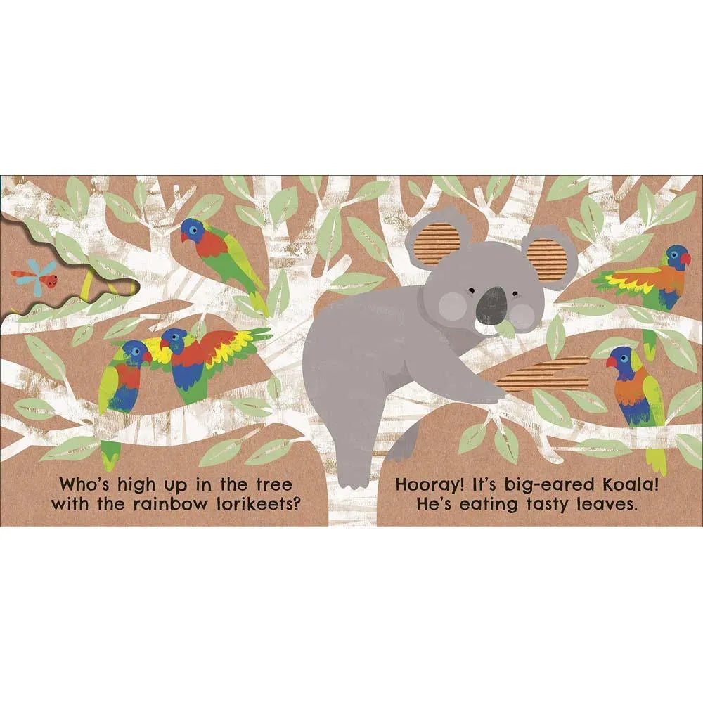 G’day, mate! Let your little explorer take a journey through the Australian forest to track down the rarely sighted koala. Say hello to wombats, crocodiles, and kangaroos in their natural habitat. But where could Koala be?