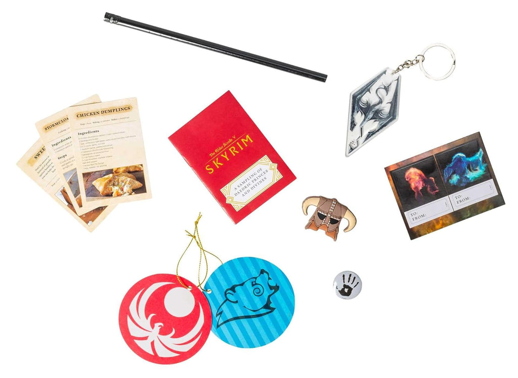 Inspired by the hit video game, The Elder Scrolls V: Skyrim - The Official Advent Calendar features 25 days of exclusive surprises including keychains, high-quality stickers, recipe cards, mini booklets, and more unique keepsakes. The perfect gift for gamers of all ages, The Elder Scrolls V: Skyrim: The Official Advent Calendar brings the epic world of Tamriel to your holiday celebrations! 25 DAYS OF SURPRISES: Discover an exciting range of one-of-a-kind memorabilia, including paper ornaments, a collectible button, recipe cards, and more. A GREAT GIFT FOR GAMERS: Full of exclusive collectibles inspired by the world of the acclaimed Elder Scrolls video games, this advent calendar will delight fans of all ages. BUILD YOUR ELDER SCROLLS COLLECTION: The Elder Scrolls V: Skyrim - Official Advent Calendar stands alongside Elder Scrolls: The Official Cookbook, The Elder Scrolls V: Skyrim Hardcover Ruled Journal, and The Elder Scrolls Online: The Poster Collection in Insight Editions’ fan-favorite line of Elder Scrolls titles.