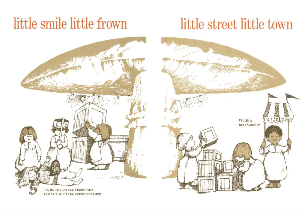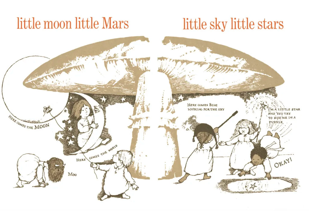 The celebrated author of The Carrot Seed reveals a tiny world where big imaginations roam free...all under a mushroom.