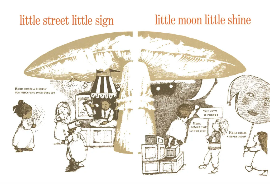 This delightfully whimsical book about a tiny under-a-mushroom world is full of fanciful goings-on as the little inhabitants let their imaginations soar.