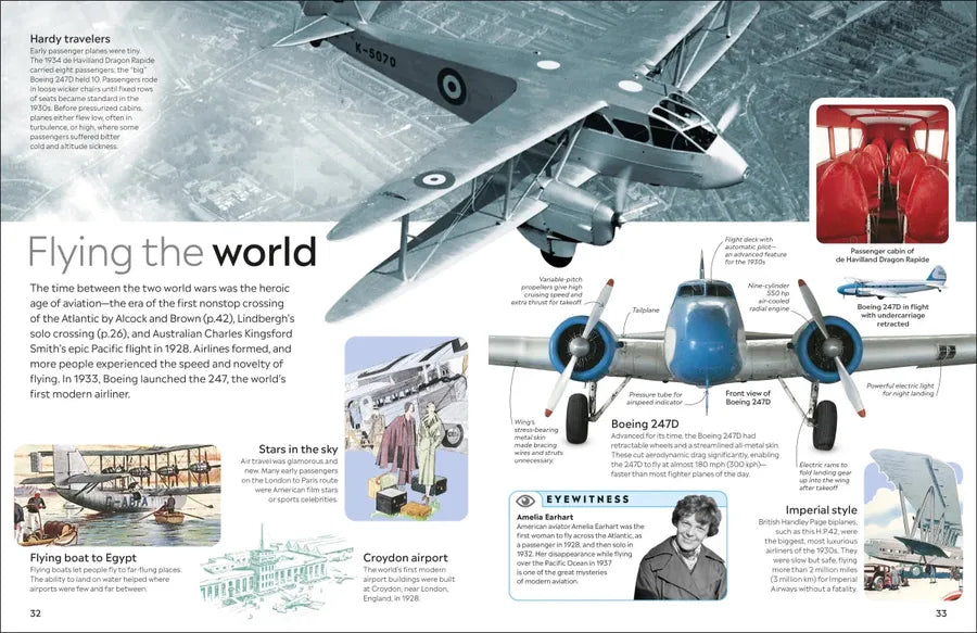 Eyewitness Flight gives a detailed overview of all things aircraft for kids aged 9+, including helicopters, gliders, zeppelins, monoplanes, biplanes, and even triplanes. Using full-color photographs of different types of aviation, including an aircraft from Leonardo da Vinci's wing machines to jet airliners, children can immerse themselves in the world of flight and this incredible human feat.