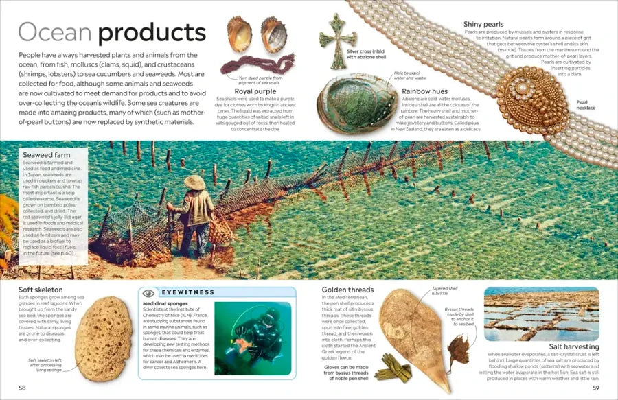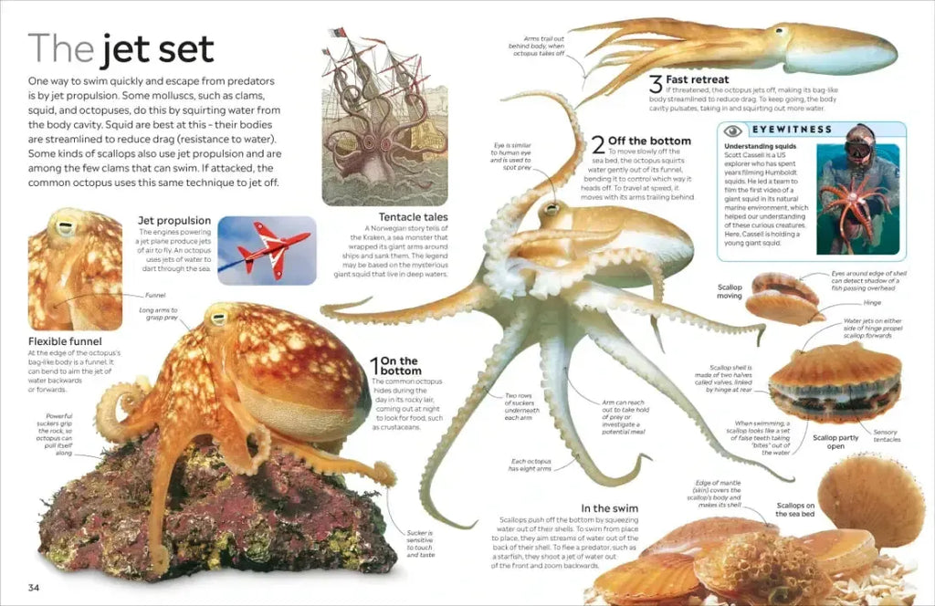 Meet jet-propelled octopuses and hermit crabs, look closely at seaweed, find out how waves form and discover the submarines and submersibles that have explored shipwrecks and the deepest trenches. Learn about prehistoric oceans and find out how people are trying to protect the oceans of the future.