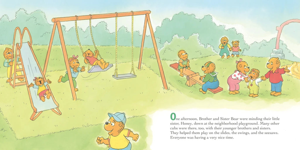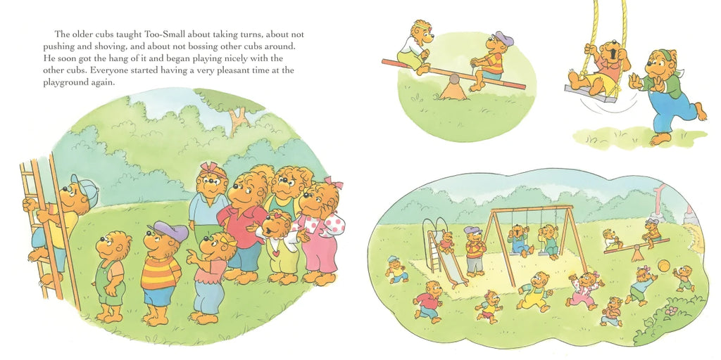 Brother and Sister teach bossy Too-Small how to be fair and play well with others at the playground in this Berenstain Bears Gifts of the Spirit storybook!