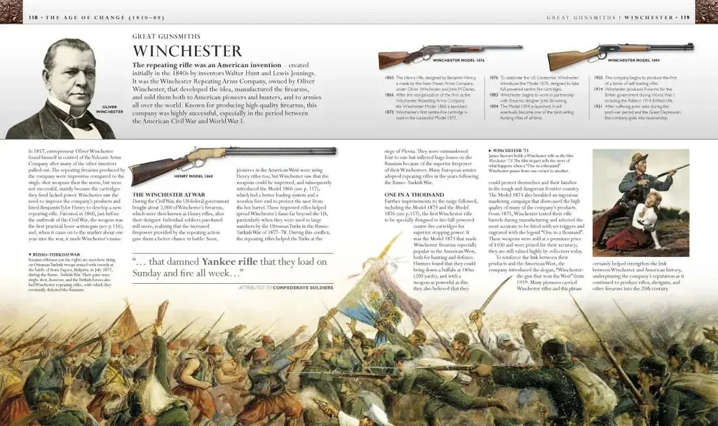 • Feature pages capture pivotal moments in gun development that changed the nature of human conflict