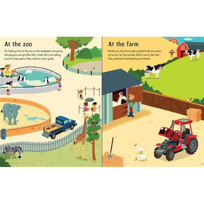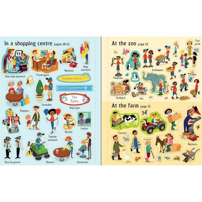 Bring scenes including a fire station, hospital, school and zoo to life with sticker people and see the amazing array of jobs people do every day. There are over 160 stickers of police officers, shop assistants, dentists, paramedics, lifeguards, porters, mechanics and more, and lots to talk about in each scene.