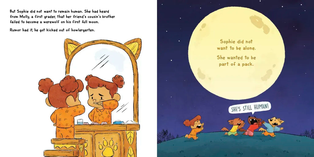 Most kids go to kindergarten, but there is a special place for those who turn into werewolves. Instead of attending school during the day, these supernatural students go to howlergarten at night! There they practice tracking scents, listening to whispers on the wind, and more. But when one student named Sophie doesn't seem to possess the basic skills, she worries she won't become a werewolf at all. What will happen if she remains human when the full moon appears? Will she still be accepted as part of the pack, or will she be cast aside as an ordinary outsider?