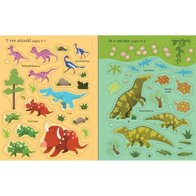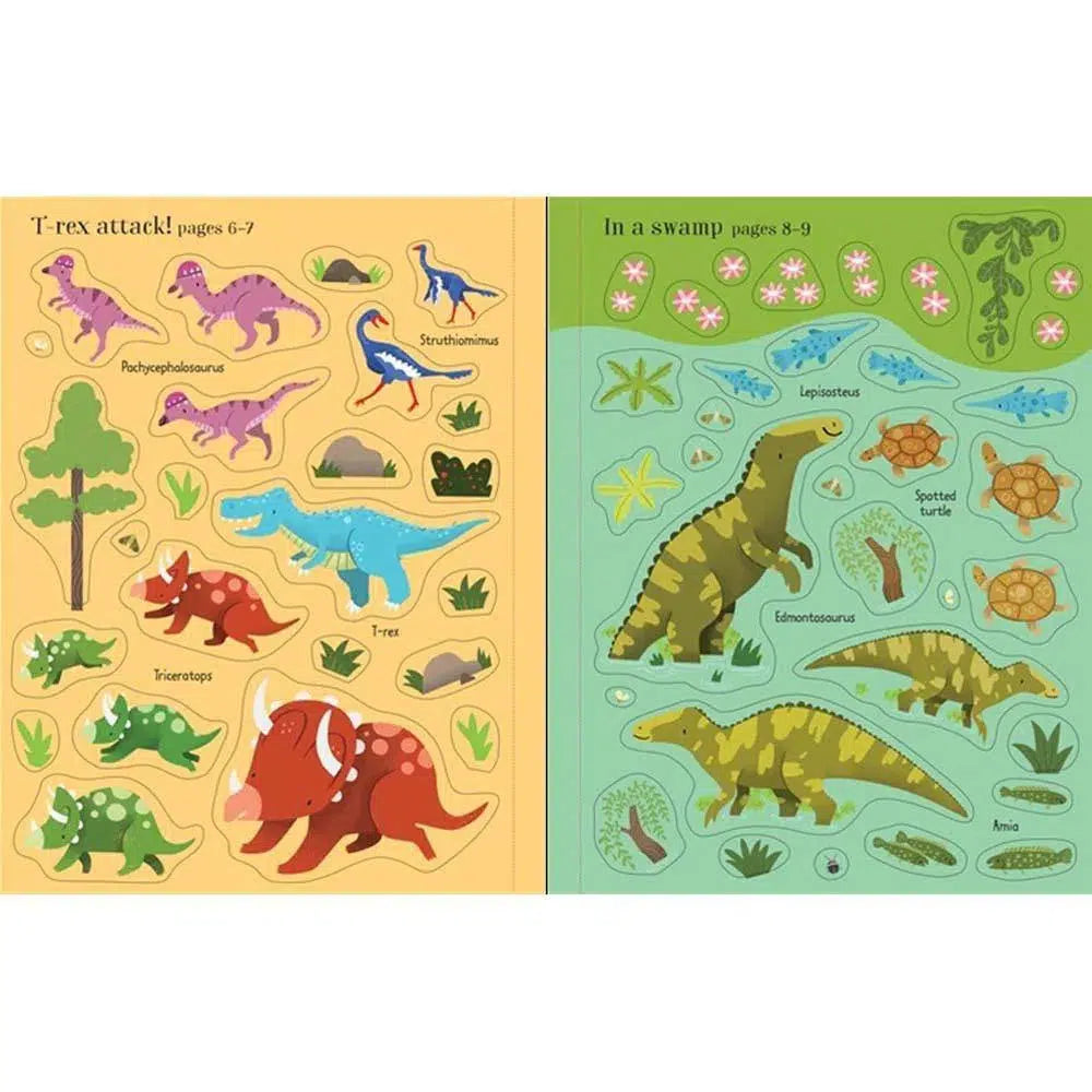 Journey back to prehistoric times and meet lots of amazing dinosaurs, from the toothy T-Rex to the powerful Diplodocus, with this bright and inviting sticker book. Learn how the Maiasaura protected her eggs, which gigantic prehistoric animals lived underwater and more whilst decorating the scenes using the 200+ stickers provided.