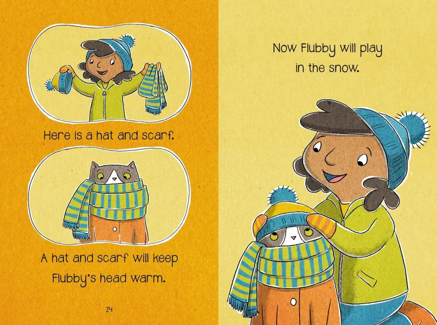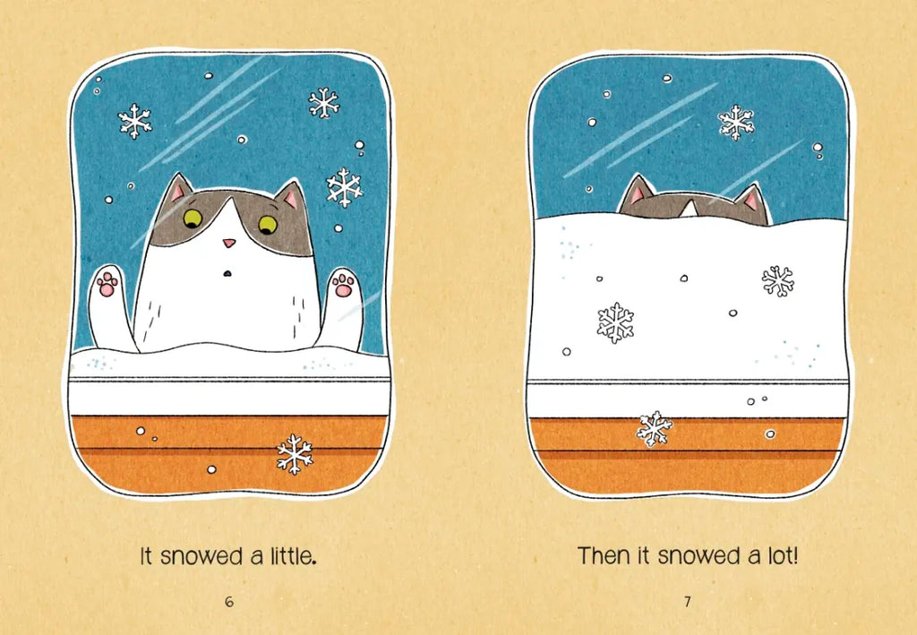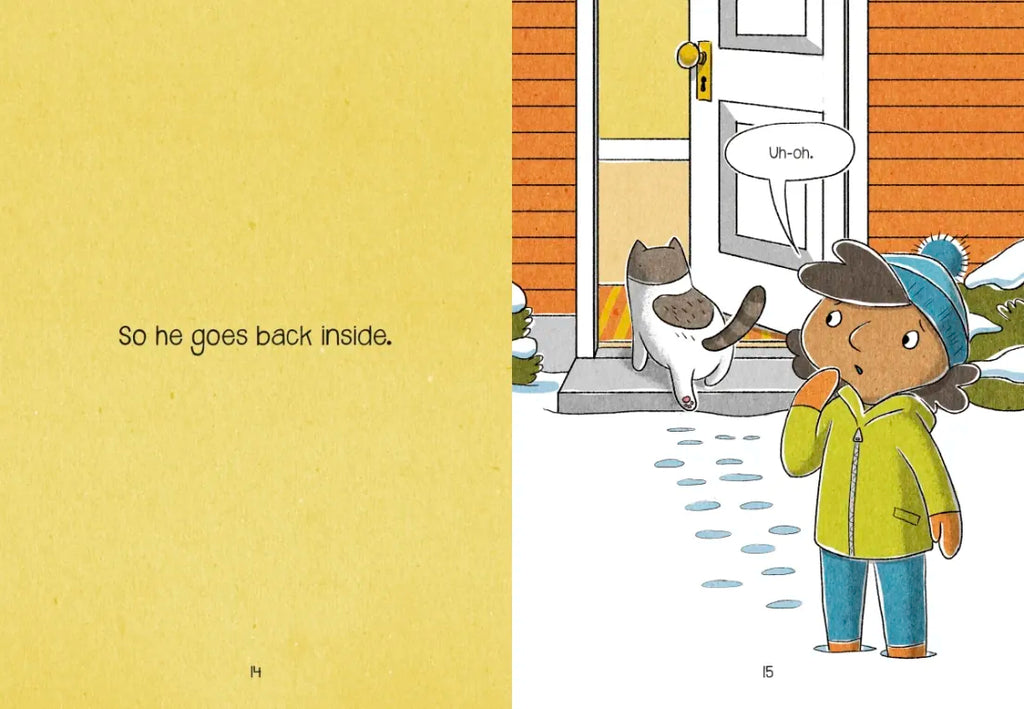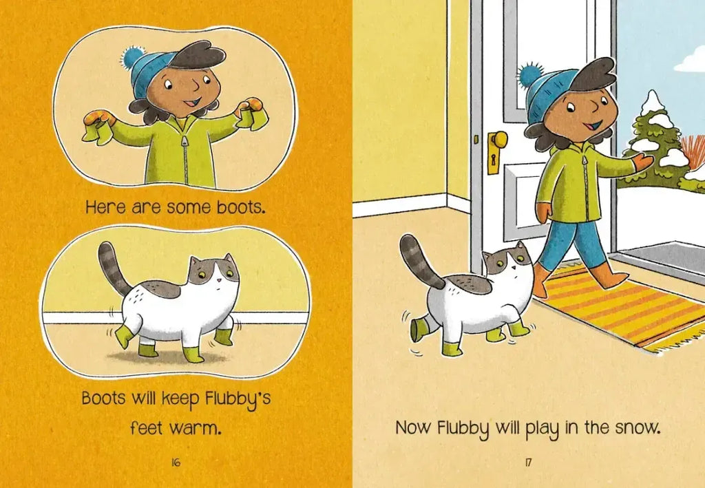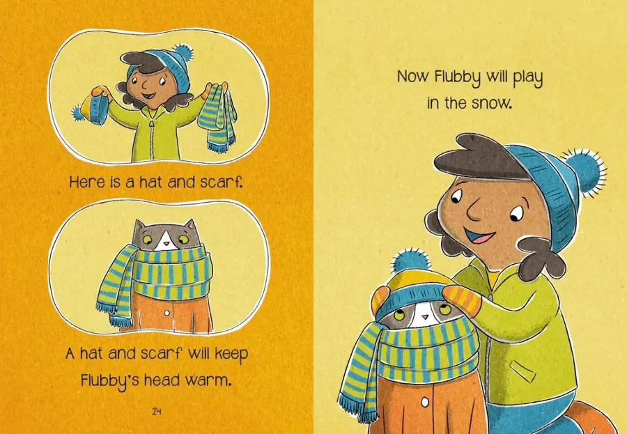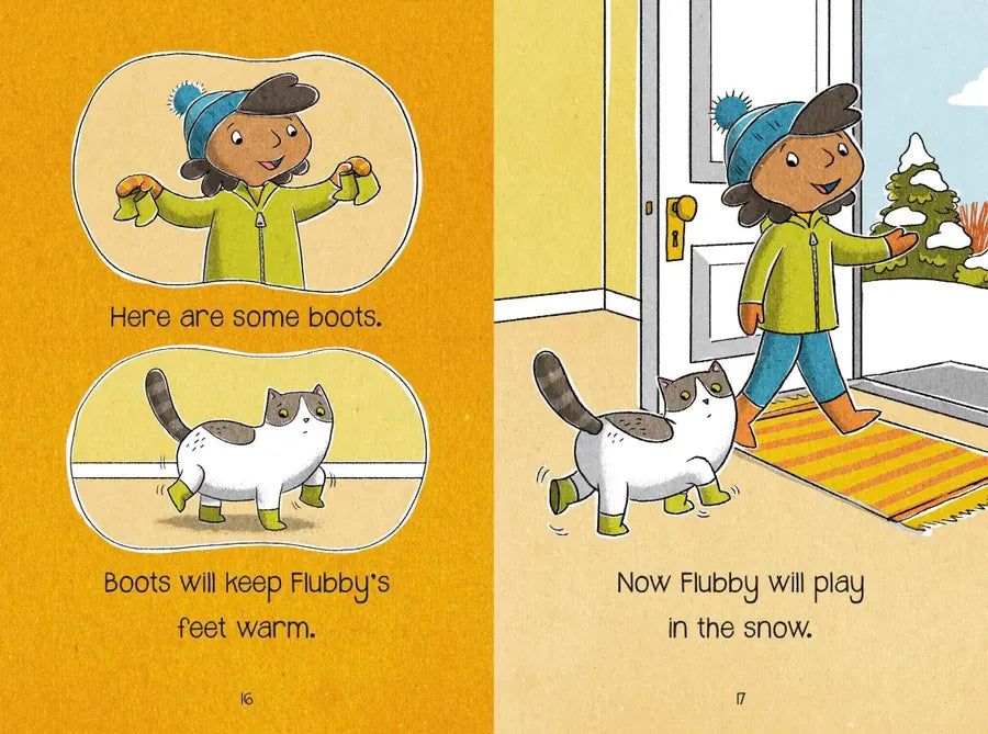 It's snowing, and Kami wants to take Flubby outside to play. But Flubby doesn't like the snow—it's too cold! Can Kami find a way to convince the cat to enjoy the winter wonderland?