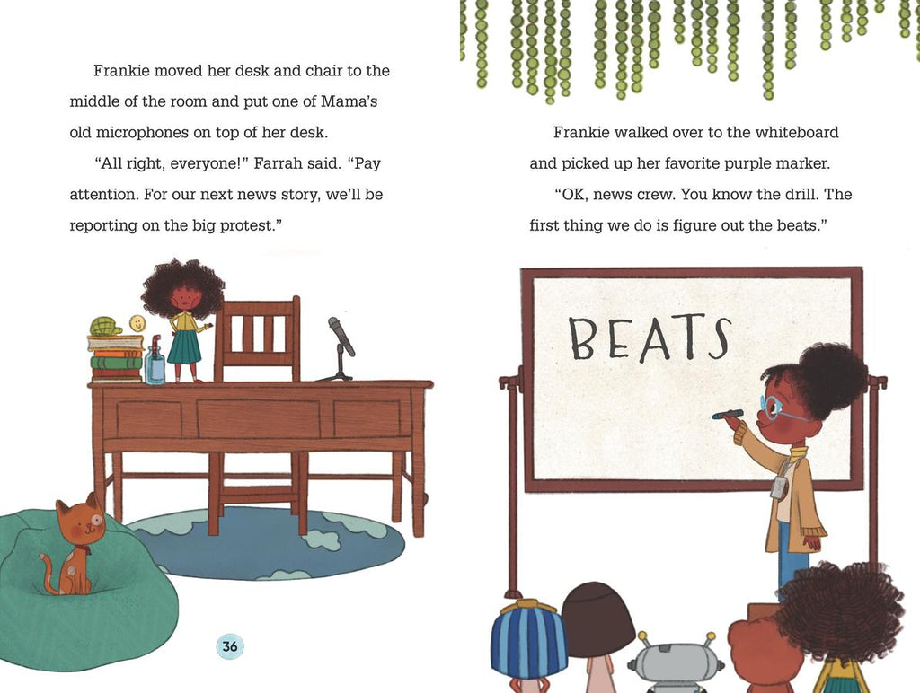 There’s breaking news on TV at Frankie’s house—a protest to demand justice! Frankie’s mama, a journalist, gets a call to cover the story, and Frankie wants to do her own reporting, too. But what is a protest, exactly, and why do people do it? Along with her news crew, including Farrah the doll, Dan the teddy bear, and Nina the cat, Frankie prepares a feature story by doing research and conducting interviews with Papa and big sister Raven. And when the toys decide to have their own protest in support of the local movement, Frankie is on the scene to help make signs, march, and, of course, get the scoop! In this latest installment of the winning series, Frankie explores big ideas like racial injustice and activism with her supportive family and learns more about journalism in the process. Young newshounds will learn along with Frankie through all-caps vocabulary terms and a glossary at the back.