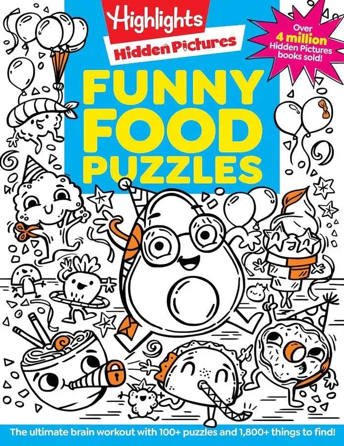 This snack-tacular treat of funny food puzzles will make little tummies growl with laughter! Highlights Hidden Pictures Funny Food Puzzles is perfect as a funny gift for kids 6+ who are hungry to solve, color and laugh their way through 100+ puzzles featuring silly food characters and more!