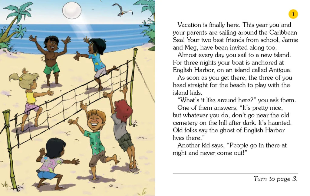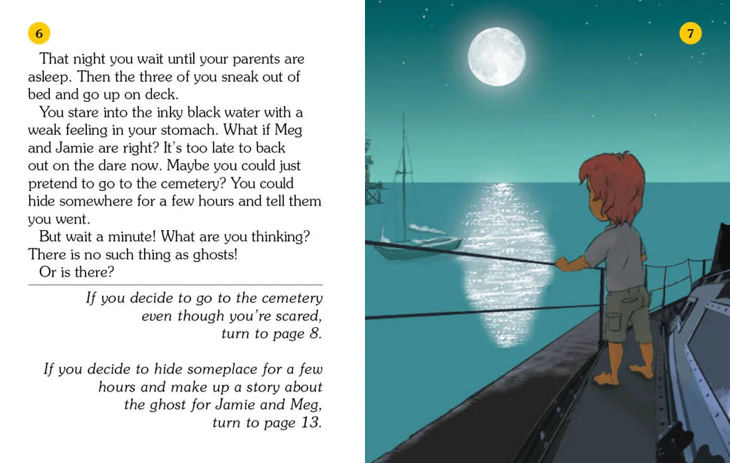 Your family vacation in the Caribbean islands takes a spooky turn when YOU meet a pirate ghost. Should you join a group of kids to go spy on the island ghost? Or sneak off to the haunted cemetery in the middle of the night and brave the ghost alone? This haunted adventure might have you travel back in time, sail across the sea, or recover a skull from a museum.
