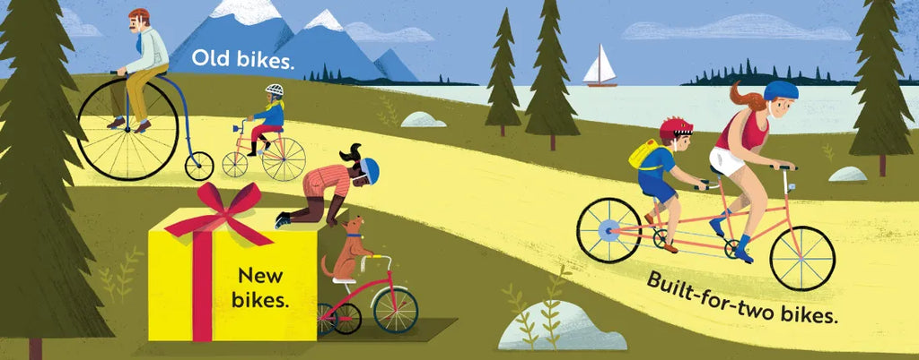 This fun and colorful board book introduces children to the joy of bike riding and bikes in many forms. There are big bikes, small bikes and extra tall bikes, and old bikes, new bikes and built-for-two bikes, and more!