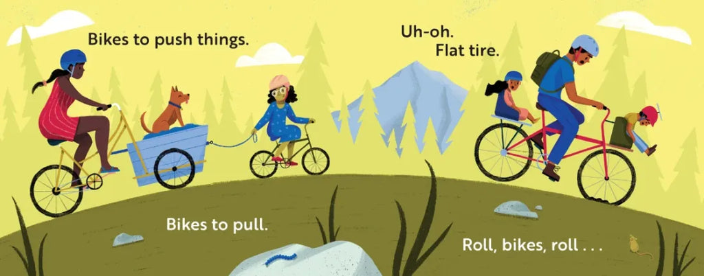 Inspired by the strong biking culture and community in the Pacific Northwest, this board book features different types of bikes and the diverse people, young and old, who enjoy them. It features bikes children will recognize and some they can imagine, like bikes that wear shoes and bikes that fly.