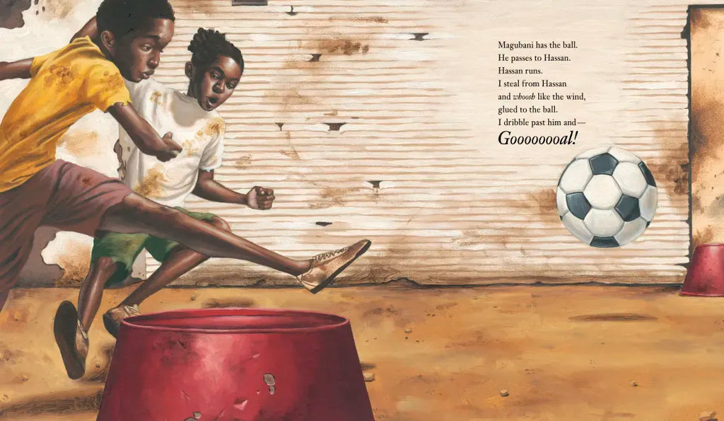 In a dusty township in South Africa, Ajani and his friends have earned a brand-new, federationsize soccer ball. They kick. They dribble. They run. They score. These clever boys are football champions! But when a crew of bullies tries to steal their ball, will Ajani and his friends be able to beat them at their own game?