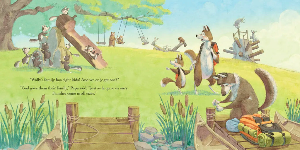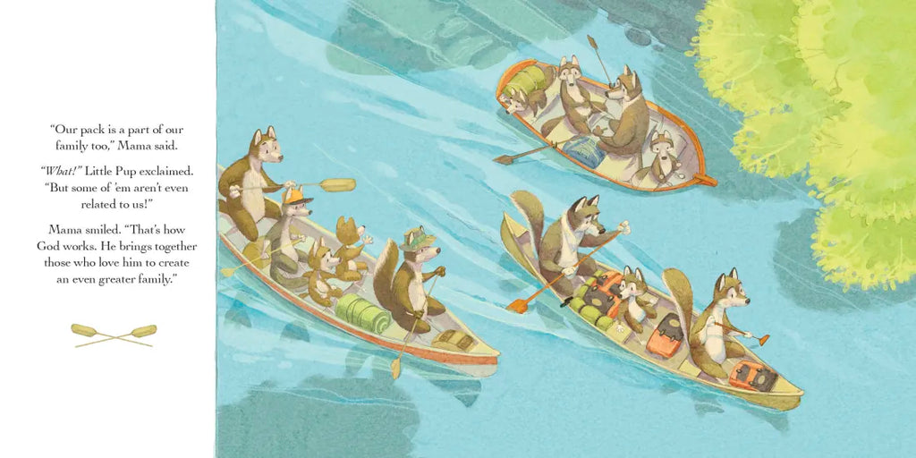 Little Pup’s wolf family is on their way to a special reunion—with lots of cousins, games, roasting marshmallows, and fun! As the young wolf thinks about different kinds of families, it’s the perfect opportunity for Mama and Papa to teach their inquisitive child about the families that God brings together. Some families are big and others are small, some are led by grandparents or just one parent, and some families include adopted little ones– yet each family is truly special.