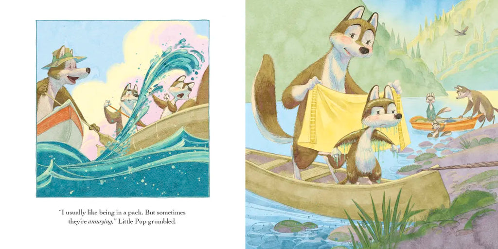 Even the members of Little Pup’s pack make up an important role in his family, although they sometimes pester him. Papa gently reminds his son…