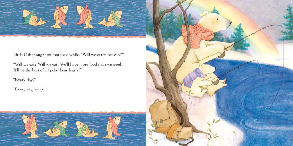 With tender words, her Papa describes a wonderful place, free of sadness and tears, where God warmly welcomes his loved ones after their life on earth is over. Little Cub and Papa spend the day wandering their beautiful, invigorating arctic world while she asks all about God’s home: How do we get to heaven? Will we eat there? Will I get to see you in heaven? Papa patiently answers each question, assuring her that . . .