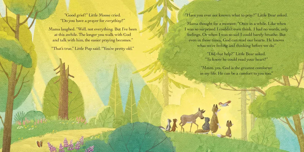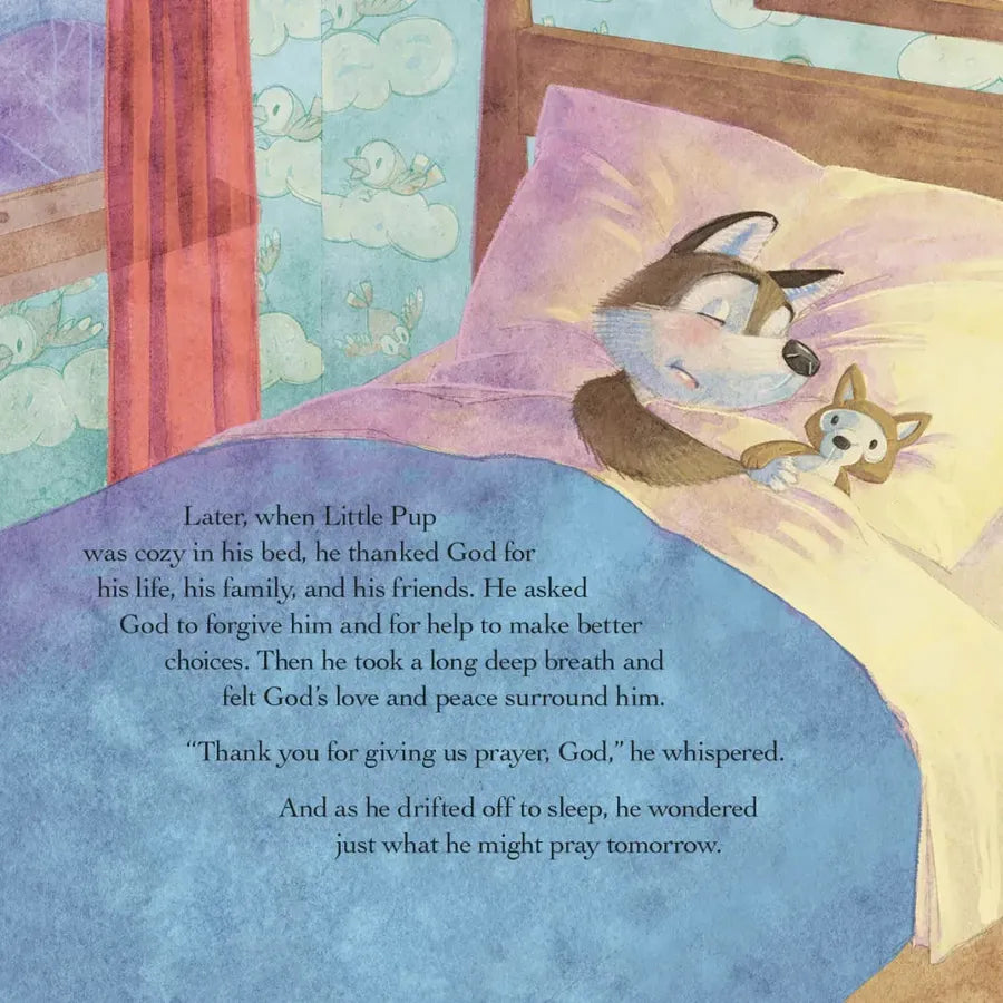 Little Pup discovers Mama sitting silently by the lake, praying. But what does that mean? And how does Little Pup go about praying to God? And what do you say to God? Little Pup's questions spill out as he and Mama walk through the woods. Mama patiently helps Little Pup learn the importance of prayer, forgiveness, gratefulness, and compassion toward others.