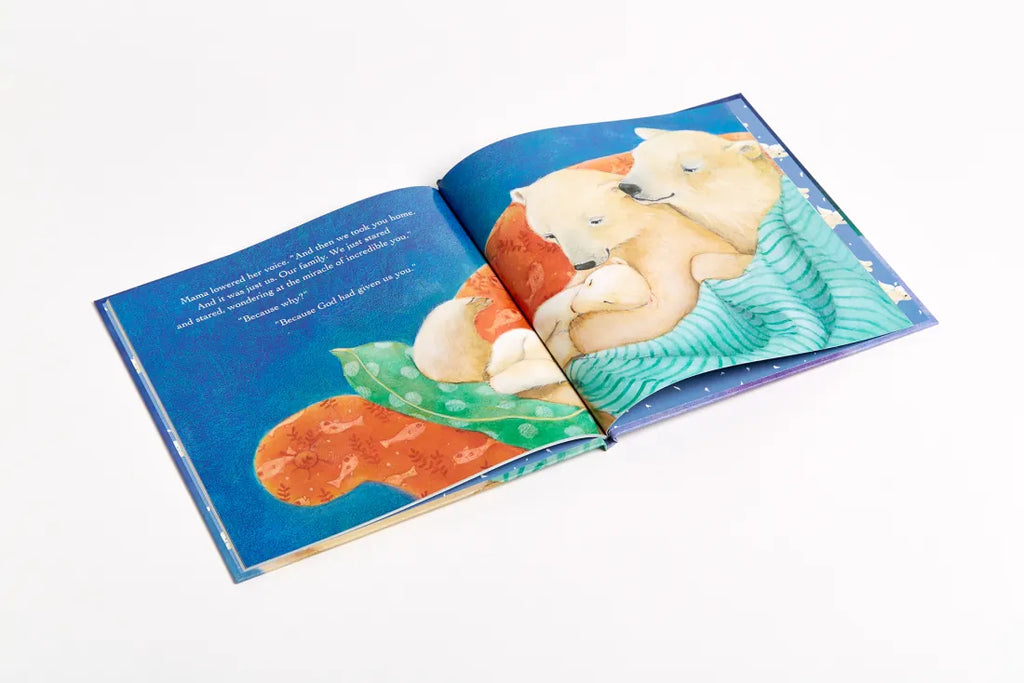 As Mama bear tucks her youngest cub under the quilts, she gently, tenderly, and reassuringly communicates the message loving parents everywhere (bears and non-bears alike) want their little ones to hear: "We wanted you very, very much, and we are so very glad because—God gave us you."