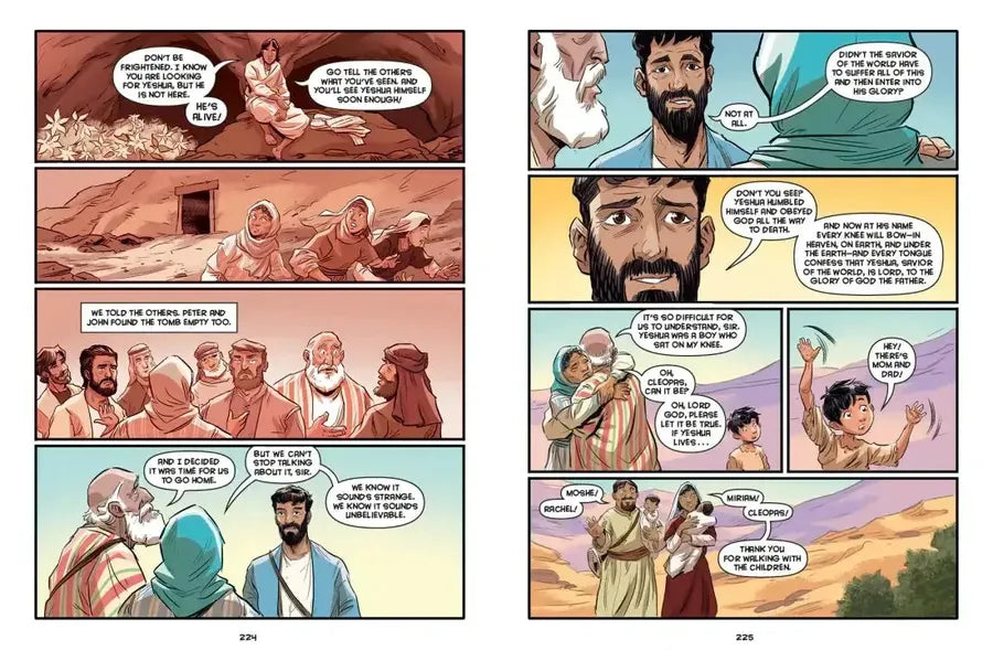 The long walk home after celebrating Passover in Jerusalem should be a joyful journey, but this year the travelers are sad and afraid. Then a mysterious stranger shows up and starts telling stories—from many years ago all the way up to the recent death of Yeshua (Jesus) on the cross—and the friends can’t wait to hear more.
