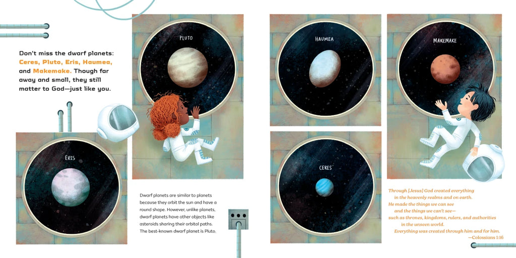 Blast off to space and discover how every part of the universe—the planets, the stars, asteroids, meteoroids, and more—display God’s glory, creativity, and, most important, his love for you and me!