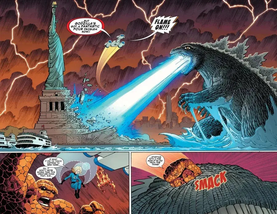 In the first round, the King of the Monsters takes on Marvel’s First family! The Fantastic Four know a thing or two about fighting titanic threats, but Godzilla is something else entirely! And then there’s an all-new version of one of Godzilla’s deadliest adversaries to contend with! You know it’ll be clobberin’ time — but for who?! Plus: Godzilla resurfaces again and again to take on the Hulk, the Avengers, the X-Men, Thor and a majorly-outside-his-weight-class Spider-Man!