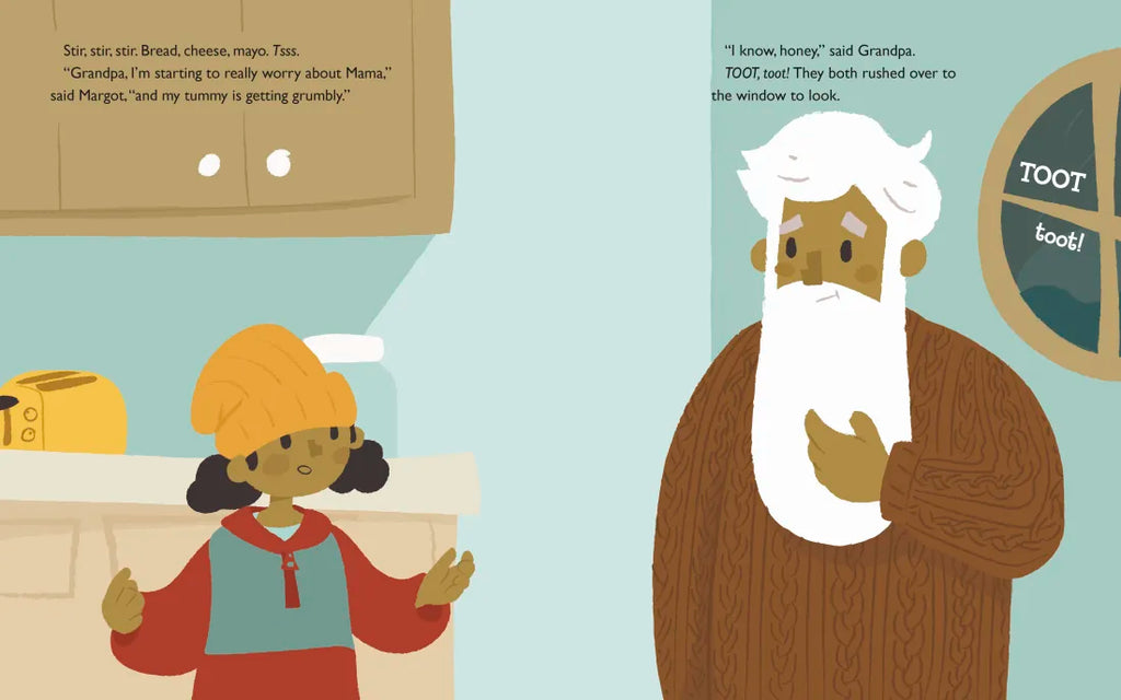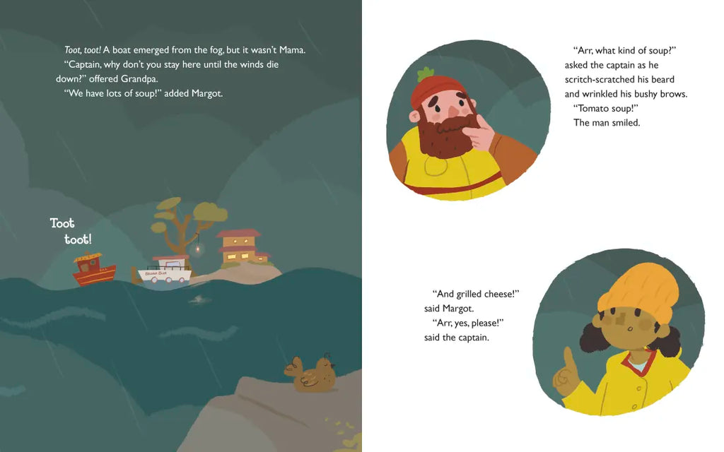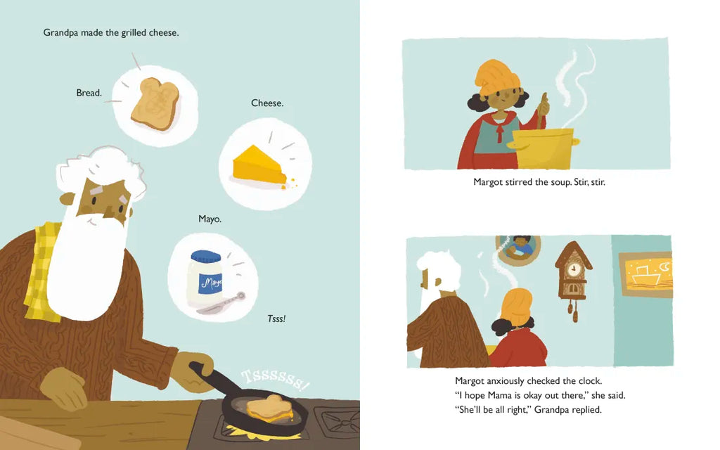 A stormy and windy night is the perfect time to make a grilled cheese. But Margot is worried about Mama. She left in her little sailboat hours ago and the storm is raging! As Margot and Grandpa welcome other busy seafarers into their home to shelter from the storm, her hope--and sandwich supplies--begin to run low. Will Margot ever be able to make Mama that grilled cheese?