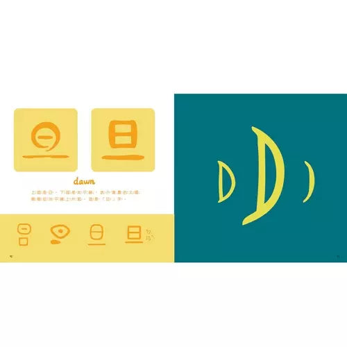本書收錄近百個漢字,每個漢字對比古文、今文與英文,