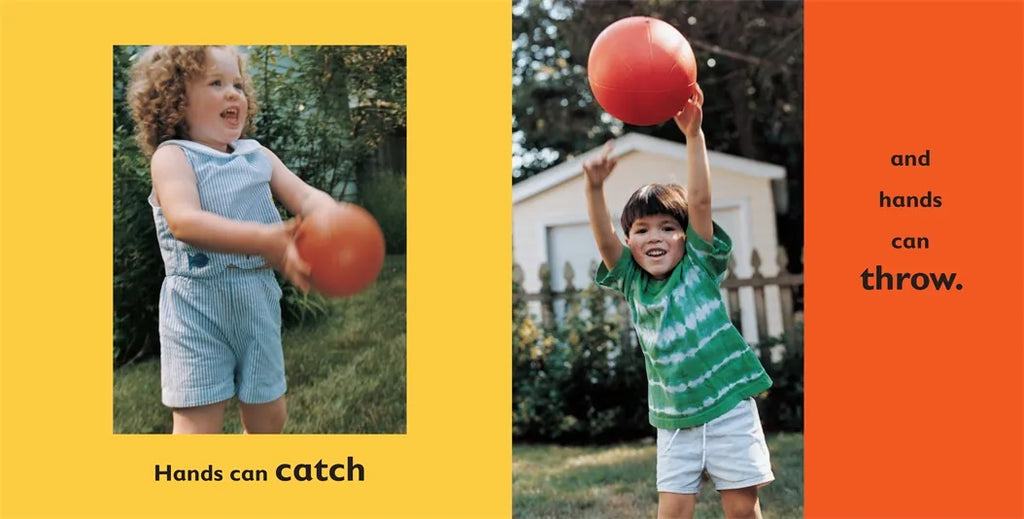 Hands can do all kinds of things — wave hello and good-bye, play peekaboo, touch things, clap, even tie a shoe. For the very young, hands are a never-ending source of discovery and a means of mastery in an ever-unfolding world. With singsong rhythm, simple design, and alluring color photos of toddlers, Hands Can invites the littlest readers to discover the many things hands can do.