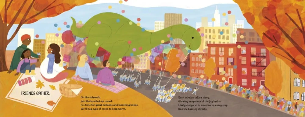 Learn the familiar traditions of Thanksgiving, and how family takes on many forms, as friends, neighbors, and relatives arrive for a busy day of cooking, crafting, sharing, and celebration. Young readers will also be reminded to remember and honor those who must work on the holiday so that others might celebrate, including transit workers and first responders.