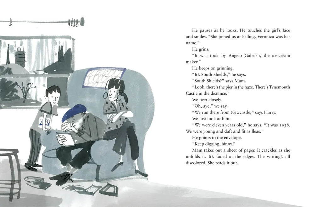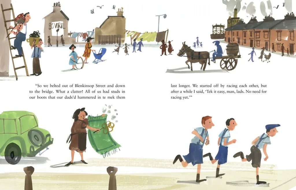A joyful, uplifting story of times gone by from the internationally acclaimed author of Skellig, illustrated in full colour by the award-winning illustrator of A Walk in London. Liam just wants to go out running with his mates – it’s not long till the Junior Great North Run, and there’s training to be done. But Mam needs him today, to help old Harry clear out his house. Harry knows a thing or two about running. When he was a lad, he says, he ran all the way from Newcastle to South Shields. “But Harry,” says Mam, “that’s thirteen miles!” Harry grins. “Different times,” he says. This is the story of that day: of sweltering heat, clattering boots, briny sea air and the heavenly taste of ice cream; the day when Harry and his pals ran and ran and ran through the blazing sunlight all the way to the sea.