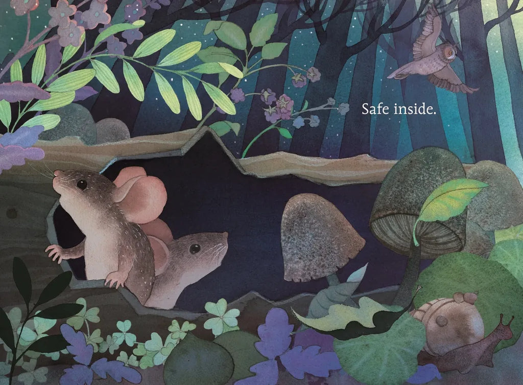 When the sun goes down and most of us are getting ready for bed, the nighttime animals of the forest all wake up to the light of the moon. It calls to them, from the slyest fox to the tiniest mouse, who feasts on leaves and fruit and scurries beneath the brush.