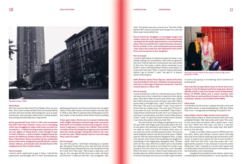The Hell’s Kitchen book shares an intimate look inside the show’s creation, from the first spark of an idea through the musical’s thirteen-year journey to Broadway, where it continues to thrill audiences today. The book includes exclusive interviews with key cast and creative team members; first-person notes from Keys on her original songs; stunning stage photography and behind-the-scenes images; insights into costume creation, set design, choreography, and casting; and much more. This beautiful tribute answers every burning question a fan of the musical may have. Ultimately, it’s a triumphant celebration of Alicia Keys and New York City.