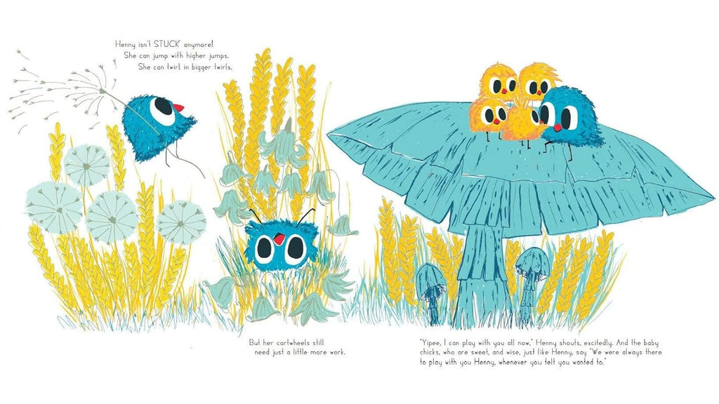 Henny is a baby chick, she is sweet and fluffy just like her friends. But unlike her friends, Henny has one tiny problem. Henny is stuck in her shell. Yes, her tiny legs and her tiny wings peep out. But Henny is most definitely stuck.