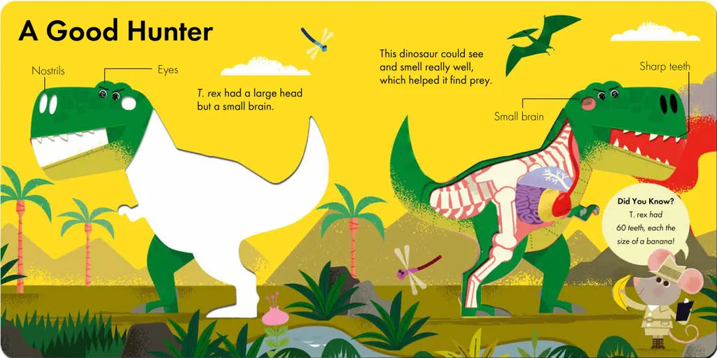 Dinosaurs were simply amazing! Take a look inside and learn all about how the Tyrannosaurs rex worked with this interactive layered die-cut board book. Simple callouts, such as "sharp teeth," "powerful tail," and "skull" invite even the youngest reader to explore the workings of this mighty creature. Topics covered include how big scientists think it was, how it hunted, what it ate, how it moved around, and more. Packed with fun facts and accessible information, this first introduction to the king of the dinosaurs is perfect for curious toddlers.