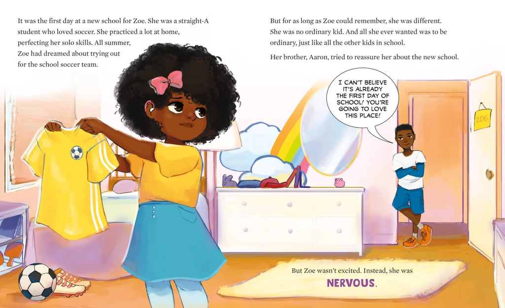 It’s the first day of school for Zoe, a young girl with hearing loss who dreams of playing on her school’s soccer team. But, self-conscious of her hearing aids, Zoe is too nervous to try out. With the help of and perspectives from new friends, what begins as a bumpy, anxiety-filled start for Zoe, soon transitions into an eye-opening experience about what it means to be different—and what it means to be extraordinary. I Am Extraordinary teaches kids how to look inside themselves to find self-acceptance and the confidence to achieve any goal.