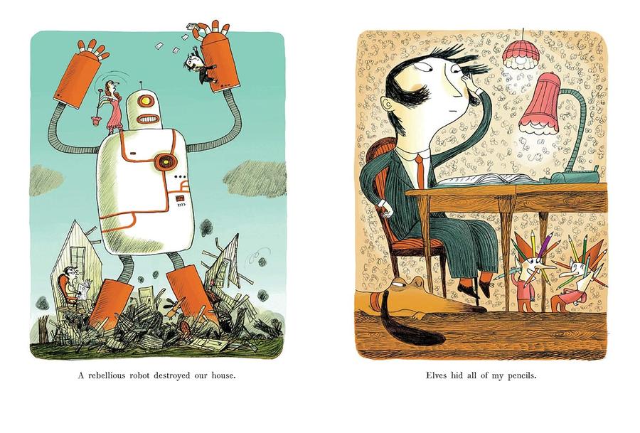 How many excuses are there for not doing homework? Let us count the ways: Giant lizards invaded the neighborhood. Elves hid all the pencils. And then there was that problem with carnivorous plants.... The excuses go on and on, each more absurd than the next and escalating to hilarious heights. Featuring detail-rich illustrations by Benjamin Chaud, this book is guaranteed to amuse kids and their parents, not to mention anyone who has experienced a slacker student moment—and isn't that everyone?