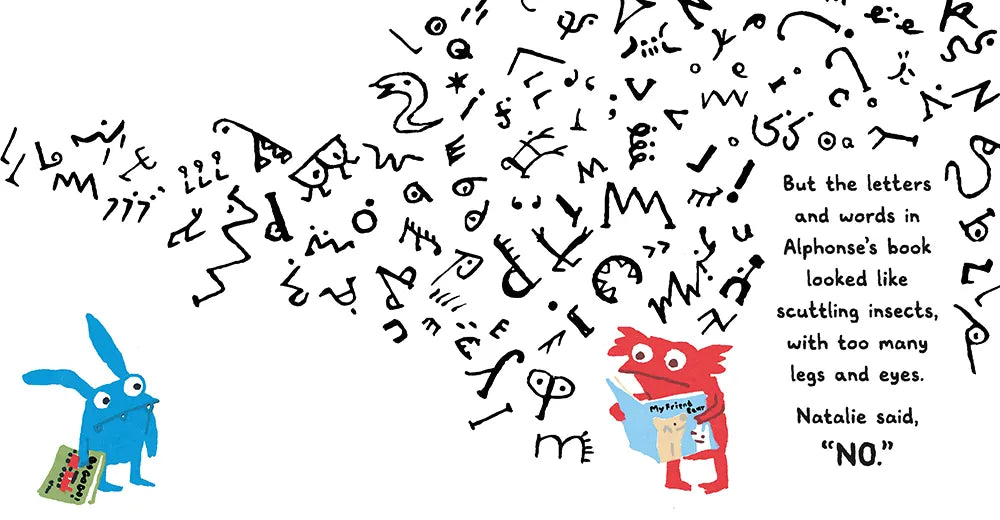 In the second title featuring favourite monster siblings, Natalie and Alphonse, Natalie is learning to read. “Now I can read all the stories in the world,” she says. “And you can read them to me!” adds little brother Alphonse. But when Natalie tries to read all by herself for the first time, the letters look like squiggles, and she isn’t so sure any more…