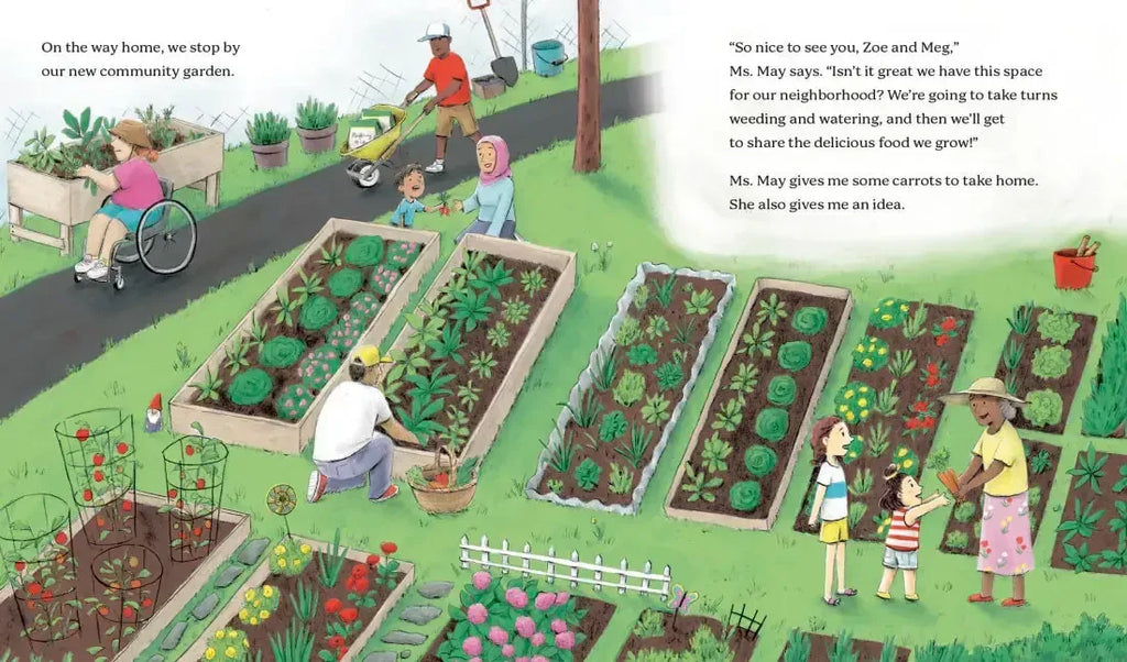 It’s an age-old problem—Zoe wants a dog but can’t have one. But that doesn’t stop her from befriending all the dogs in her neighborhood—and appreciating each one’s charms and quirks. She knows which pups give high-fives, enjoy being read to, and love music. And she also knows she’s good at solving problems, so when a visit to the community garden inspires a brilliant doggy idea, it’s time to celebrate! Young animal lovers will appreciate Zoe’s predicament and love her paws-itively pup-filled solution.