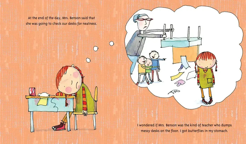 Rose is a distracted and creative soul. She does her best at school, but sometimes her mind wanders and she answers the wrong question. And keeping her desk neat is a challenge. When it’s time to make thank-you cards for a class visitor, Rose’s art supplies turn her workspace — and her — into a colorful mess. But her artistic skills shine through in the gorgeous oversize card she creates. Could she possibly get a star after all?